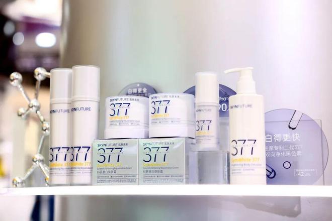 环亚集团旗下增长最快的品牌之一——肌肤未来SKYNFUTURE在本次展会中重点展示了其明星产品线系列”,全新升级的“二代377家族”凭借肌肤未来SKYNFUTURE独家研发的第二代377专利技术[9],在成分配方、功效表现、科技含量及使用体验四大维度实现全面突破,实现了高效与温和的共存。