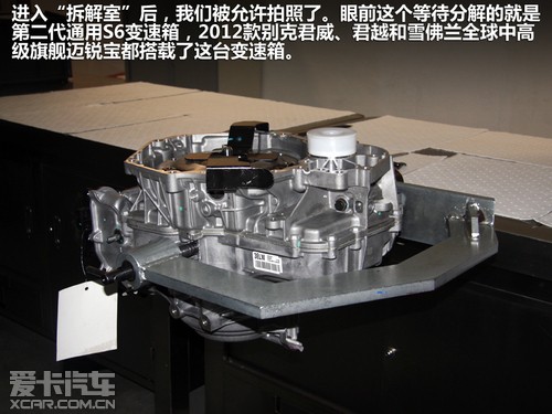 进入了可拍摄环节,我们的神经一下子放松了许多,一台全新的通用第二代S6变速箱展现在我们面前,工作台上还有此次拆解会用到的各种工具。