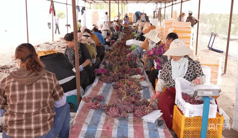 葡萄产业的发展,不仅改善了生态环境,更让当地群众共享发展红利。克赛葡萄基地探索形成的“基地+合作社+农户+销售”全链条模式,成为带动群众增收的核心动力。克赛葡萄基地常年吸纳400余名固定用工,高峰期用工量突破2万人次。